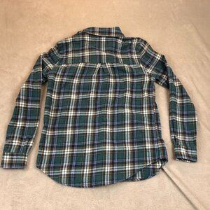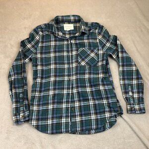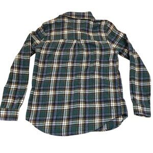 Aeropostale Womens Shirt Small Boyfriend Fit Green Blue Plaid Flannel Button Up