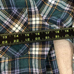 This Aeropostale boyfriend-fit flannel shirt, crafted for a relaxed yet stylish silhouette, offers unmatched comfort. Made with soft fabric, its plaid design blends green and blue tones with subtle accents, making it a versatile wardrobe essential for layering or standalone wear. The single chest pocket and button-down closure add functionality.