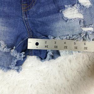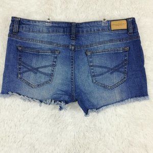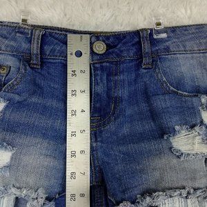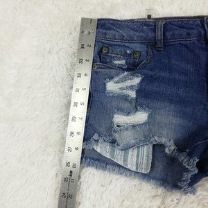 Aeropostale Womens Shorts Shorty Blue Denim Medium Wash 2.5" Inseam Raw Hem 6