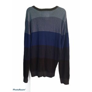 Aeropostale Wool Blend Sweater Men's Size XL V Neck Navy Blue Striped