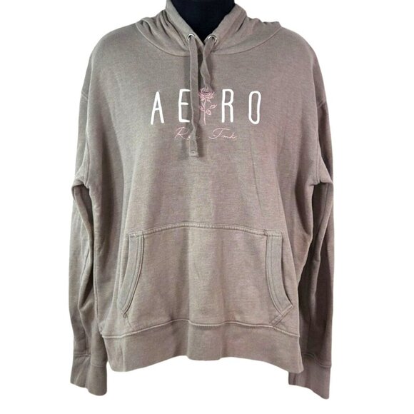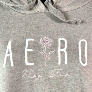 Aeropostale XL Womens Gray Hoodie With Pink Rose Logo Kangaroo Pocket & Drawstri