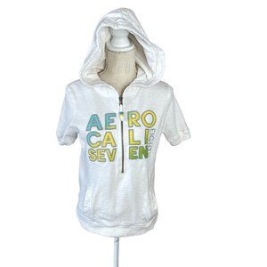 Aeropostale Y2K Short Sleeve Hoodie Sweatshirt Womens Sz M White Half Zip Vtg