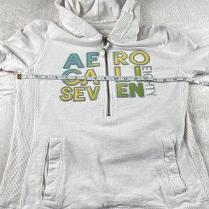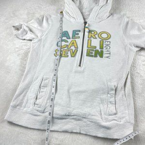 Aeropostale Aero Cali Eighty Seven Hoodie Sweatshirt Womens Size M White Half Zip Y2K Vtg