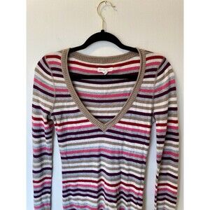 Aeropostale Y2K Striped Ribbed Sweater Top Womens Medium 28 inches in length 26 inch sleeve length (outside) 15 inches pit to pit laying flat V-neck Fitted Long Sleeve No flaws