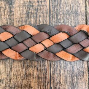 Brown Woven Leather Strap with Thick Gunmetal Gray Buckle Accented with Brown Leather
