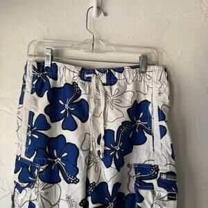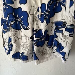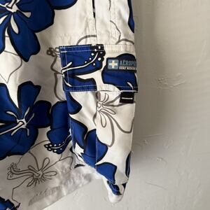 Aeropostale Y2k Swim Trunks Shorts Mens XS Blue White Floral Hawaiian Board Surf