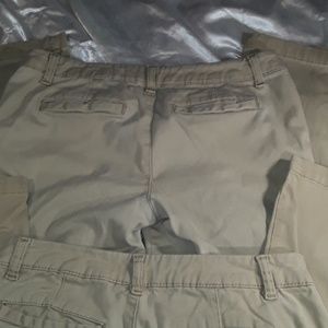 This is 4 pairs of pants all are sizes 9/ 10. 3 pairs of Aeropostale pants 2 tan and 1 black. The 4th is a pair of American Eagle Artists blue jeans that have A boot cut. These Jean's are size 10. All pants are iighhtly warned but in great condition as you can see in the pictures.