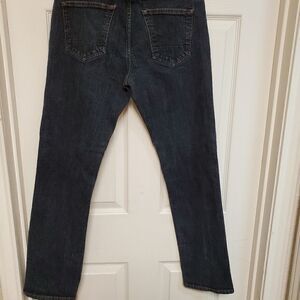 Aeropostale dark Wash slim straight jeans size 30×30 length is 36in waist is 16in inseam 28in measurements are approximate not exact and is not doubled and are measured with the item laying flat binI