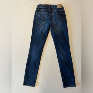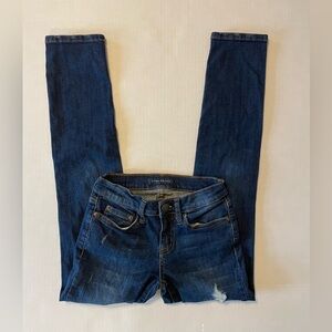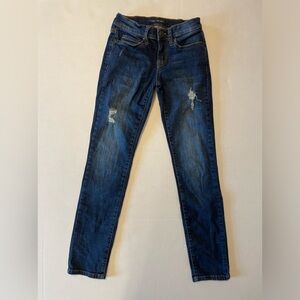 Jeans are five pocket with front zipper and button closure. Gently worn and in good used condition.