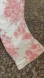 White jeans with pink floral print.