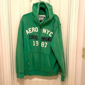 Aeropostale hoodie full zipper front men’s size XXL Green with logos, stained
