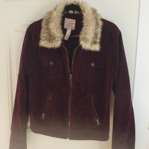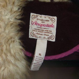 Women's, Aeropostale jacket, burgundy, soft velvety fabric, with attached faux fur collar, size XL, $15