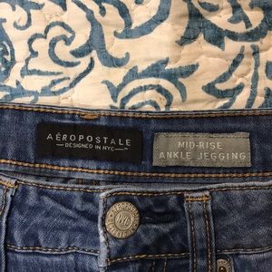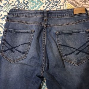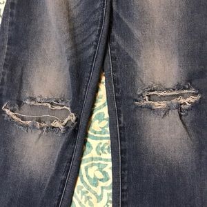 My ultimate favorite pair of jeans. So comfortable and so easy to wear. Two holes in the knees and a medium wash blue.