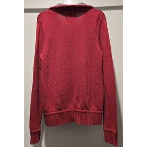 Keywords: quarter zip sweater, pullover sweater, red sweater, gray collar sweater, mens sweater, ribbed knit sweater, casual sweater, medium sweater, long sleeve sweater, cozy sweater, fall sweater