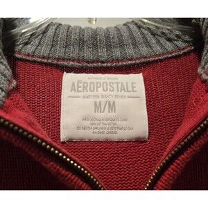 Aeropostale med Red Quarter Zip Pullover Sweater Gray Collar Ribbed Knit Casual