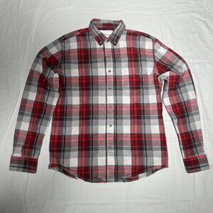 The Aeropostale men's long sleeve windowpane plaid flannel button-down shirt in size large is a stylish and comfortable addition to any man's wardrobe. Made from 100% cotton flannel, this shirt features a classic collared neckline with a button closure and pockets for functionality. The red plaid pattern adds a touch of casual flair, making it perfect for everyday wear. With a regular fit and quality construction from Aéropostale, this shirt is a versatile and timeless option for any man looking for a reliable and fashionable wardrobe staple.