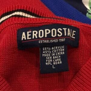 Get ready to turn heads with this vibrant Aeropostale red striped sweater! Featuring bold black and white stripes, this eye-catching sweater is perfect for adding a pop of color to any outfit. In excellent condition and from a smoke-free home, this size large sweater offers a comfortable and stylish fit.