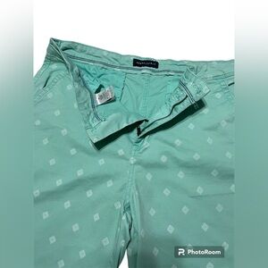 Green shade flat front zip/Button distressed pockets Beach/casual