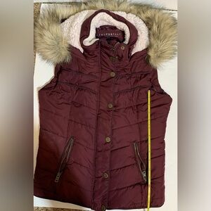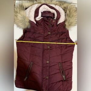 Aéropostale Sleeveless Puffer Jacket in Size Small Petite with pockets and gauze fur hoodie.