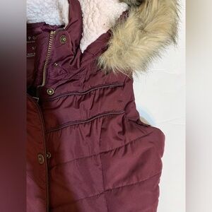 Aeropostale sleeveless puffer jacket with faux fur hoodie in size Small Petite