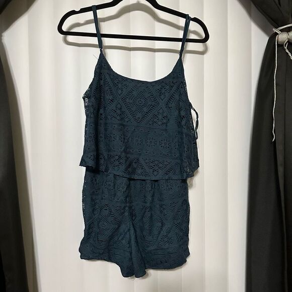 Aeropostale table cloth detailed teal/aqua romper, adjustable straps