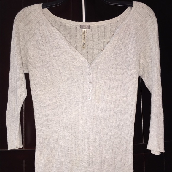 Textured. Thin material. Buttons on chest. Quarter sleeves.