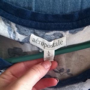 White with blue flower Aeropostale tshirt size: large has been worn but no tears or stains
