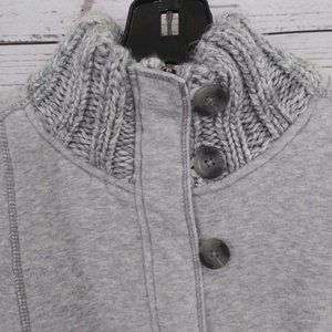 Aeropostale women's L gray jacket zip up button chunky knit collar lined WX111
