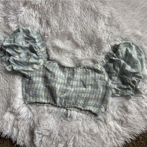 Aeropostale Checkered Crop Top Puffy Sleeves New Blue White Womens Size XS
