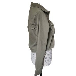 Aeropostale Ladies Olive Green Cropped Raw Hem Button Down Jacket - Size XS