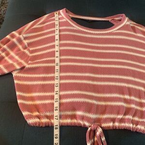 Aeropostale Lon Sleeve Crop Sweater. Dusty rose & white stripes. Drawstring waist. Cutout back. Lightweight. Perfect condition.