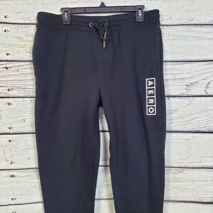 Aeropostale Men's Black Fleece Jogger Sweatpants Size L Drawstring Waist AERO Lo