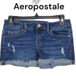 Aeropostale Midi distressed roll cuff denim shorts sz 2
