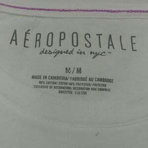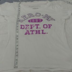 Aeropostale White Crew Neck Cap Sleeve Top with Purple/Silver lettering M