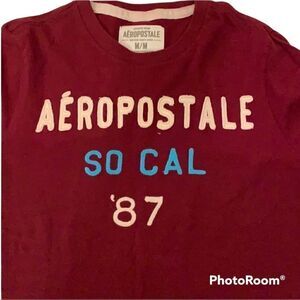 Aeropostale men’s red shirt. Size medium. Shirt sleeve. 100% cotton. Pen mark on front of shirt pictured. From smoke and animal free home.