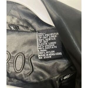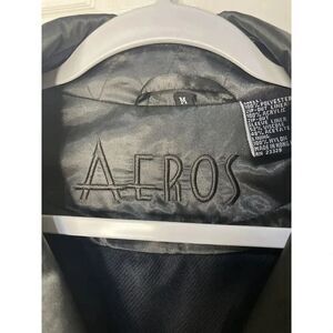 Elevate your style with this classic and timeless Aeros double breasted trench coat! Made of silky black polyester with a button closure, this jacket is perfect for any occasion, whether it be a formal event or a casual night out. The medium size and flattering design make it a great addition to any wardrobe.