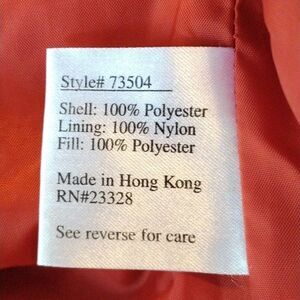 Pretty persimmon colored quilted jacket. Medium weight, zip front and zip pockets. Seaming for fit. Size L measures 44 at chest, 46 at bottom hem. 25 long from shoulder to hem. Sleeves 25. Comfortable and cozy.