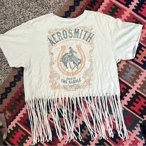 Aerosmith graphic back in the saddle fringe cropped rodeo tee medium