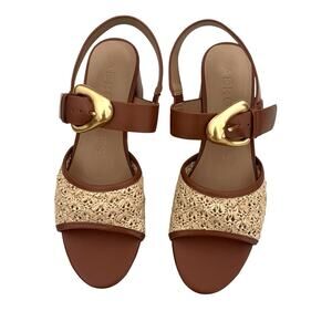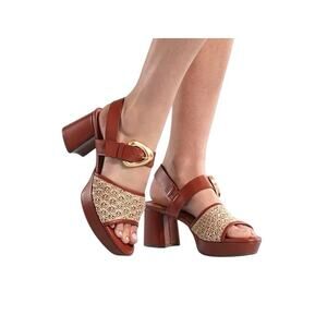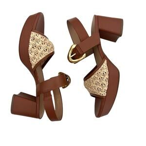 Aerosole Chamber Platform Block Heel Sandal Sz 10 brown Raffia Boho Chic Retro