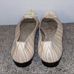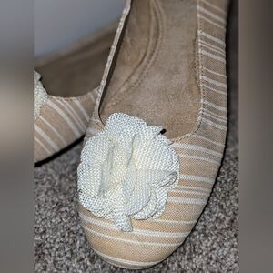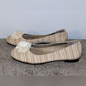 Aerosoles 11M Tan & White Striped Floral Accent Ballet Flats NEW