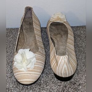 Keywords: Aerosoles, ballet flats, flats, striped shoes, floral flats, tan ballet flats, casual shoes, womens shoes, comfortable flats, slip on shoes, neutral flats, spring flats, summer flats