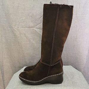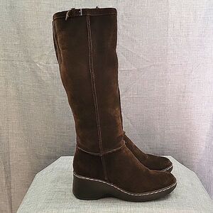 Aerosoles 2015 Front Kick Tall Brown Suede Leather Wedge Heel Boot, Women's 7.5