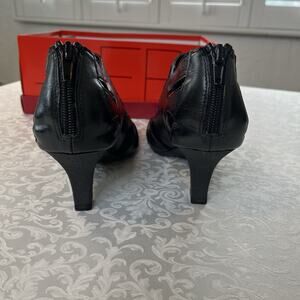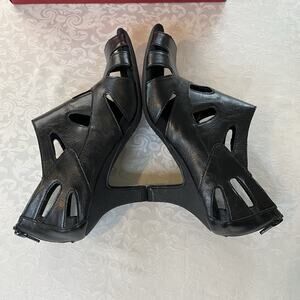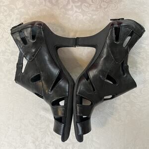 Aerosoles 7.5 Fax Haven Black Leather Casual Heeled Open Toe Sandals 3"