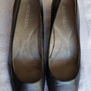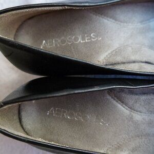 Aerosoles 8M Slip On Wedge Black Leather Closed Toe Casual Comfort Shoes