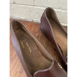 Aerosoles A2 Brown Leather Rounded-Square Toe Loafers White Stitching Size 7