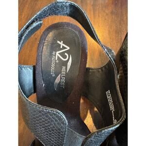 Aerosoles A2 Heeled sandals, size women's 9; Power Yoga; Black. In EXCELLENT pre-owned condition. Only worn a few times.
