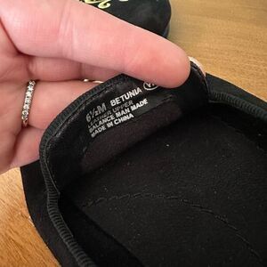 Aerosoles Betunia Women’s Black Suede Leather Slip on Loafers Gold Crest Toe Emb