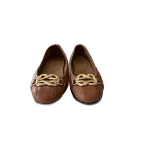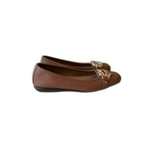 Aerosoles Big Bet Tan Gold Interlocking Chain Link Flats Shoes Size 7.5
