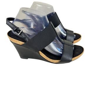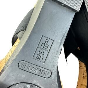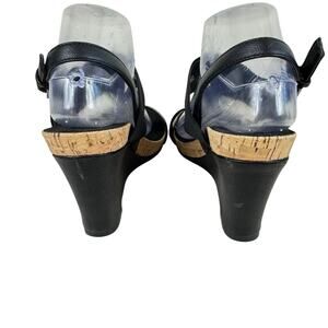 Aerosoles Black Plush Behind Open Toe Cork Wedge High Heels Strappy Size 10