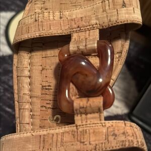Experience comfort and style with the Aerosoles Boston sandal! This shoe features a pillow cushion insole on a sliver wedge, a soft square toe shape, and a signature chain link ornament to make a truly fashionable statement. Featuring a T-strap with Pillow cushion insole. Chain link ornament details. Synthetic upper, lining, TPR midsole, outsole, Square toe and ready to wear Slip-on. Comfortable all day Foam footbed with 0.5-in. heel. Spot clean. 9m marked on the back and in the shoe. Retails for 58.